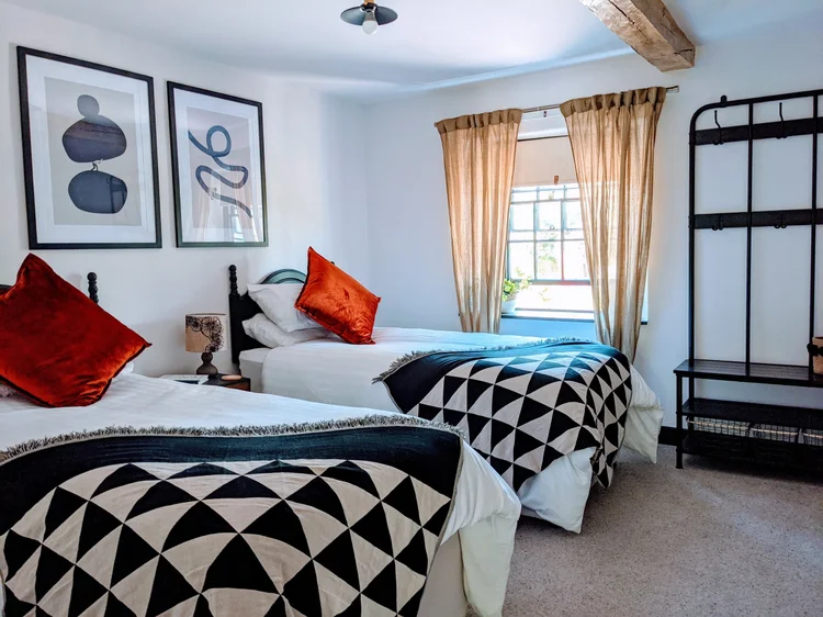 Then make your way up the traditional cottage stairs, taking a couple of big steps to the first floor where you’ll find 3 calming bedrooms that sleeps 5, along with the bathroom with an over-bath shower.